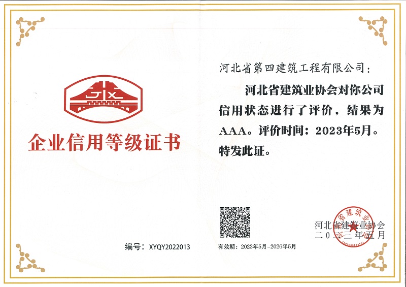 2023年河北省建協(xié)AAA信用等級(jí)證書(shū)