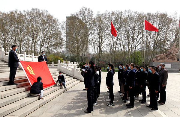 3月31日上午,在五分公司黨總支的組織下,機(jī)關(guān)第一、二黨支部在家黨員、團(tuán)員青年、群眾共三十余人統(tǒng)一著裝,徒步來到華北軍區(qū)烈士陵園,開展“緬懷英烈 愛國教育”主題黨日活動。為了讓團(tuán)員青年、群眾都受到教育,此次活動范圍擴(kuò)大到了全體職工。在紀(jì)念碑前,全體職工向長眠在此的烈士們致默哀、三鞠躬,之后整齊列隊、緩步向烈士們獻(xiàn)上自己親自動手制作的小白花,隨后面向紀(jì)念碑,右手舉拳,在黨總支書記賈銀建領(lǐng)誓下,立足崗位鄭重宣誓。