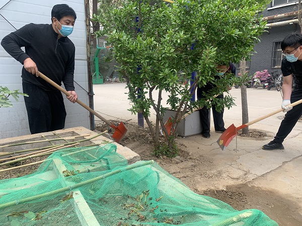 下午一點半,還沒到集合時間,黨員們已經(jīng)在辦公樓下領取工具,有序排隊,整裝待發(fā)。經(jīng)過分公司黨總支書記孫立鋒簡單的講話和小組分工后,大家各自拿著掃帚、鐵鍬等工具投入到負責的區(qū)域。首先大家對院內路面、綠化帶、車棚、門廳、大門洞等區(qū)域進行了打掃和清理。勞動過程中,分公司班子成員分成四隊,孫立鋒帶頭負責打掃職工活動室周邊以及車棚的犄角旮旯,主任會計師孫春泉帶頭負責打掃辦公樓東側死角位置,開發(fā)副經(jīng)理高青帶頭打掃樓后狹窄過道,主任經(jīng)濟師孔艷艷帶頭擦拭門洞宣傳欄、清理花池中的枯枝、雜草。長期“飽經(jīng)風霜”的門洞宣傳欄一層塵土,孔艷艷全然不顧塵土飛揚,踩著凳子擦拭高處。在清理車棚衛(wèi)生時,為達到更好的清理效果,需要將每輛車移位,搬動電瓶車是個力氣活,開發(fā)科科長許茂茂帶頭,將電瓶車一一來個“平穩(wěn)大挪移”,清出垃圾后車輛重新擺放整齊。