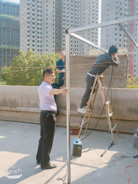說干就干,立即行動。劉保國和左建華對樓頂平臺實地量測,記錄好尺寸。兩人一邊量著,一邊比劃著,對所需的材料做到心中有數(shù)。“采購材料的事兒,就交給我了?!痹O備材料科科長史永濤拿出電話就開始聯(lián)系起來。材料就位后,考慮到有些電焊的活兒需要專業(yè)的工人,劉保國趕緊聯(lián)系了一名電焊工。大家分工合作,你遞材料、我扶鋼管,你安裝、我綁線,邊干邊聊。30多度的高溫下,大家的額頭上直冒汗,但干勁兒絲毫沒減。防雨棚安裝完畢,新買的洗衣機放置到位,大家松了一口氣?!敖裉斓拇蠊こ探Y束了,趁著這次機會,咱們把宿舍的門窗都檢查一遍?!眲⒈f道,抬手擦了擦汗水,便拿起工具向宿舍走去。大家對宿舍的門窗逐一進行檢查,對破洞的紗窗進行了更換,對門上松動的把手進行了維修。