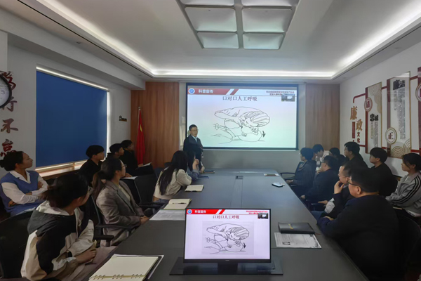為確保取得實效,黨群辦公室人員根據(jù)職工年齡分層分布的特點,與科長代表、項目經(jīng)理多次聯(lián)系,提前了解職工想要學習和掌握的健康知識,作為重點講解內(nèi)容。經(jīng)過多方溝通,黨群辦公室人員了解到職工想要學習心肺復蘇、黃金四分鐘急救、正確操作自動體外除顫儀、海姆立克急救,以及慢性心血管疾病前期癥狀識別、心梗腦梗突發(fā)時如何自救、肩周炎、頸椎炎、腰肌勞損等醫(yī)學知識,便將收集的意見和建議進行歸納總結(jié),反饋給授課老師。老師根據(jù)意見建議,制作貼合職工需求的課件。講座分為健康知識講解、現(xiàn)場答疑解惑、實操練習三個環(huán)節(jié),采用遞進式講解的方法,確保職工聽得懂、學得會、用得上。