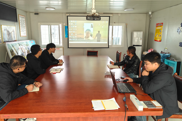 在視頻連線過程中,屏幕那端的母親聽到孩子的聲音、看到孩子的臉龐,無不露出欣慰的笑容,細心地囑咐他們“要注意身體,安心工作。”“家里一切都好,請放心?!卑踩珕T龍士博走出會議室,舉起手機,鏡頭掃過標準化鋼筋加工區(qū),驕傲地說:“媽,這是我的‘戰(zhàn)場’!”“媽,您看這是我的宿舍,住宿條件一點兒也不差!”其他職工也紛紛展示自己的工作和生活環(huán)境,分享工作中的點滴趣事,表達對母親的感激之情。