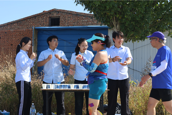 賽道上,秩序維護(hù)組的志愿者們化身“最熱情的指引者”??吹竭x手因路線不熟悉放慢腳步,立刻快步上前微笑指引,同時(shí)大聲喊出“加油!前方500米補(bǔ)給站”;遇到年長(zhǎng)選手體力不支,主動(dòng)遞上溫水,輕聲叮囑“調(diào)整呼吸,堅(jiān)持就是勝利”。補(bǔ)給站內(nèi),志愿者們更是以“秒級(jí)響應(yīng)”服務(wù)每一位選手。左手遞水杯、右手遞紙巾,動(dòng)作連貫嫻熟,還不忘根據(jù)選手狀態(tài)送上鼓勵(lì):“您跑得真棒,加油!”一句句溫暖的話語(yǔ)、一個(gè)個(gè)有力的手勢(shì),讓選手們瞬間充滿力量。“聽(tīng)到志愿者喊‘加油’的那一刻,感覺(jué)腿上又有了勁,他們比我還在意我的成績(jī),特別感動(dòng)?!币幻状螀⒓玉R拉松的年輕選手笑著說(shuō)。