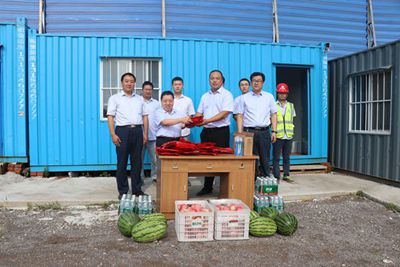 上午8點(diǎn),公司滿載茶葉、西瓜、蘋果、花露水等慰問品的商務(wù)車緩緩開進(jìn)職工生活區(qū),李懷生一邊給職工發(fā)放慰問品一邊關(guān)心地詢問他們的生活和工作情況,并叮囑他們有困難和問題及時向項(xiàng)目部反映,還要求項(xiàng)目部一定要做好職工的后勤保障,讓大家消除后顧之憂。