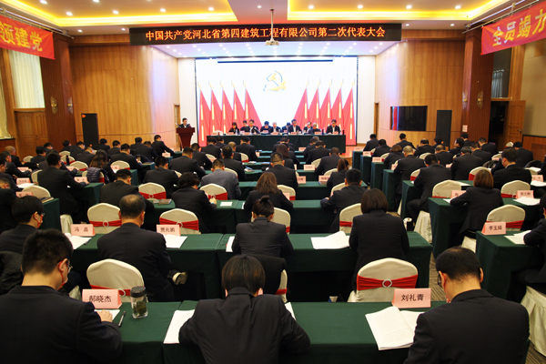 當(dāng)日,中國(guó)共產(chǎn)黨河北省第四建筑工程有限公司第二次代表大會(huì)在石家莊市利淳商務(wù)酒店勝利召開(kāi)。在預(yù)備會(huì)之后,大會(huì)在莊嚴(yán)的《國(guó)歌》聲中隆重開(kāi)幕,96名黨員代表齊聚一堂,凝聚思想共識(shí),共商黨建良策,共謀發(fā)展大計(jì),共繪美好藍(lán)圖。集團(tuán)公司黨委書(shū)記、董事長(zhǎng)、總經(jīng)理張?zhí)炱缴W臨會(huì)議并講話,集團(tuán)公司黨委辦公室主任、組織部部長(zhǎng)張秋英、集團(tuán)公司紀(jì)委副書(shū)記、紀(jì)委辦公室主任、監(jiān)督檢查室主任張煜出席大會(huì)并全程指導(dǎo)。會(huì)議先后由公司黨委副書(shū)記、總經(jīng)理唐志強(qiáng),黨委副書(shū)記、紀(jì)委書(shū)記、工會(huì)主席李懷生主持。