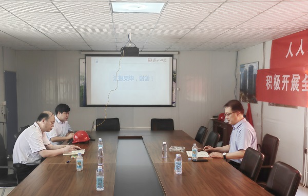 在項目會議室,董富強首先聽取了項目部關(guān)于進(jìn)度、安全、質(zhì)量、文明施工等情況的匯報。他邊聽邊記,邊聽邊問,“施工進(jìn)度怎么保證?”“創(chuàng)優(yōu)目標(biāo)如何實現(xiàn)?”……他問得很細(xì),記得認(rèn)真,反復(fù)強調(diào)施工任務(wù)要再細(xì)化,務(wù)必卡緊節(jié)點,創(chuàng)優(yōu)工作要再深入,務(wù)必措施到位。在項目施工現(xiàn)場,董富強實地了解工程進(jìn)展情況并進(jìn)行指導(dǎo)。正值全國“安全生產(chǎn)月”活動開展之際,董富強要求項目部提高政治站位,壓緊壓實責(zé)任,落細(xì)落實管控措施,確保施工安全。