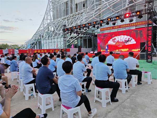 據(jù)悉,項(xiàng)目部高度重視此次志愿服務(wù)活動(dòng),統(tǒng)籌安排人員,積極與志愿服務(wù)隊(duì)對(duì)接,在施工現(xiàn)場(chǎng)規(guī)劃出一片場(chǎng)地,進(jìn)行清理和平整,供舞臺(tái)搭建使用。在活動(dòng)前一天,項(xiàng)目部在微信群內(nèi)發(fā)通知,將活動(dòng)內(nèi)容逐項(xiàng)說明,確保每一名職工知曉。為保證職工能夠按時(shí)觀看節(jié)目,項(xiàng)目部食堂準(zhǔn)備了便于食用的晚餐,并提前購買了礦泉水、水果等放在現(xiàn)場(chǎng),方便大家隨時(shí)取用。