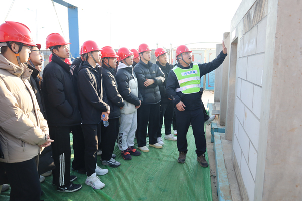 12月6日,七分公司滄州市殘疾人康復(fù)中心項目部迎來了一批特殊的客人——河北農(nóng)業(yè)大學理工系主任周欣帶領(lǐng)的工程管理系150余名師生,開展“帶生訪企尋崗”活動。公司人力資源部部長李鋒、分公司黨總支書記王保剛、副經(jīng)理李植利一同參加。