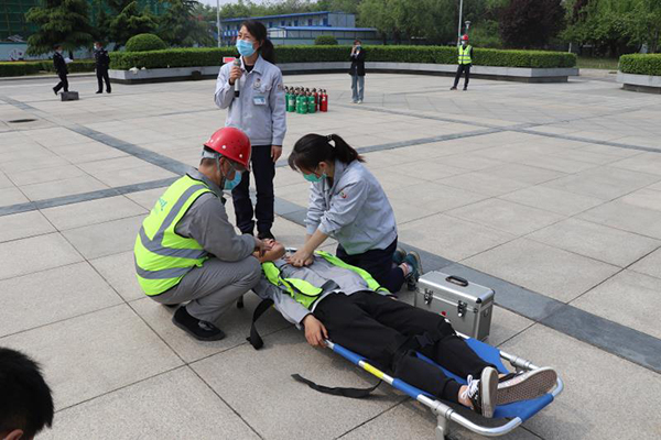 上午10點,消防救援支隊講解員對全體人員進行消防安全知識培訓,詳細講解了防煙面罩正確佩戴方法、疏散逃生要領,以及滅火器的使用方法和注意事項。10點半左右,演練正式開始,施工現(xiàn)場三區(qū)二層濃煙滾滾,“著火了,著火了¨¨¨”項目安全員在現(xiàn)場巡查時發(fā)現(xiàn)火情高聲呼喊,周圍施工人員迅速拿滅火器進行滅火,項目經理張玉賓接到險情后馬上通知義務消防隊員滅火并組織緊急疏散。大家用濕毛巾捂住口鼻,俯身低頭按照演練逃生路線快速從現(xiàn)場撤離到演練集合區(qū)。在大家撤離火災現(xiàn)場的同時,救援組孫杰、楊克、董擁軍等人把傷員抬到通風處,他們在醫(yī)療救護組的指導下,用雙手拍打傷者雙肩并呼叫他的名字、用觸摸頸動脈等方法斷傷者是否喪失意識,并進行心肺復蘇。心肺復蘇演練時,按壓胸部是最有效也是最常用的辦法,施救人員首先在傷者兩乳頭連線中間,胸骨中下三分之一處找準按壓點,然后用手掌根部緊貼傷者胸部,兩手重疊,五指相扣,手指翹起,肘關節(jié)伸直,用上身重量垂直下壓30次,經過救治傷者最終蘇醒,整個搶救過程有條不紊,最后藁城區(qū)消防救援大隊長張海寧對應急預案演練進行了點評,此次火災應急預案演練圓滿結束。