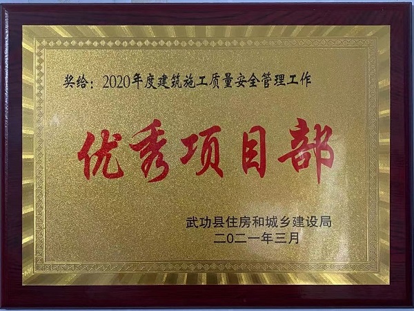 4月25日,武功縣住房和城鄉(xiāng)建設(shè)局表彰了2020年度建筑施工、房地產(chǎn)開發(fā)和物業(yè)管理工作先進(jìn)集體和先進(jìn)個(gè)人,四分公司陜西金沙河項(xiàng)目榮獲“2020年度建筑施工質(zhì)量安全管理工作優(yōu)秀項(xiàng)目部”稱號(hào)。