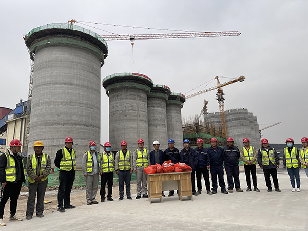 4月29日上午,業(yè)主安丘山水水泥有限公司領(lǐng)導帶著三百余斤豬肉等慰問品,專程來到三分公司山東安丘山水項目慰問,感謝項目部克服困難提前4天完成水泥儲存庫、水泥配料站滑模施工。