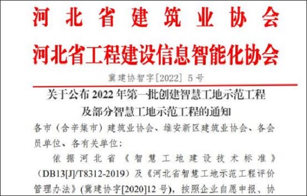 5月29日,河北省建筑業(yè)協(xié)會與河北省工程建設(shè)信息智能化協(xié)會聯(lián)合發(fā)布了2022年河北省第一批創(chuàng)建智慧工地示范工程名單,由二分公司承建的井陘縣醫(yī)院救治能力提升項(xiàng)目獲得了河北省智慧工地最高級別——三星級示范工地的榮譽(yù)。