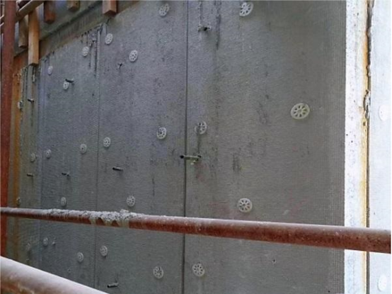 為此,項(xiàng)目部成立專門的課題實(shí)施小組,提出利用BIM技術(shù)繪制Revit模型,對復(fù)合保溫板進(jìn)行統(tǒng)一建模排版、分拆、編號、加工制作,再采用“三合一”技術(shù)創(chuàng)新方法開展施工:一是基于3D打印技術(shù),設(shè)計了一種帶卡槽結(jié)構(gòu)的新型墊塊,來控制鋼筋混凝土保護(hù)層厚度,二是制作加固直板,確保復(fù)合保溫板陰陽角施工質(zhì)量,三是采取螺栓孔洞內(nèi)填充防水砂漿、保溫砂漿封堵等措施,不僅增強(qiáng)了墻體的性能,還提高了外墻防滲防漏水性能,共同形成了“FW-Ⅲ復(fù)合保溫板與模板一體化支設(shè)工藝”科研成果。