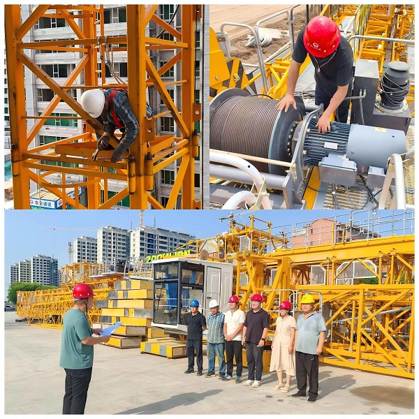 說干就干!8月6日上午,在分公司設備堆放場及使用現(xiàn)場,排查工作全面展開?,F(xiàn)場即戰(zhàn)場,這里沒有旁觀者,只有建筑起重機械安全的“偵察兵”與“守護者”。經(jīng)驗豐富的設備經(jīng)營管理科科長郭新輝目光如炬:“停!這顆螺栓有松動跡象,必須立刻緊固!”話音未落,技術骨干李進康已經(jīng)遞上工具包,配合默契,郭新輝熟練精準地完成了加固。