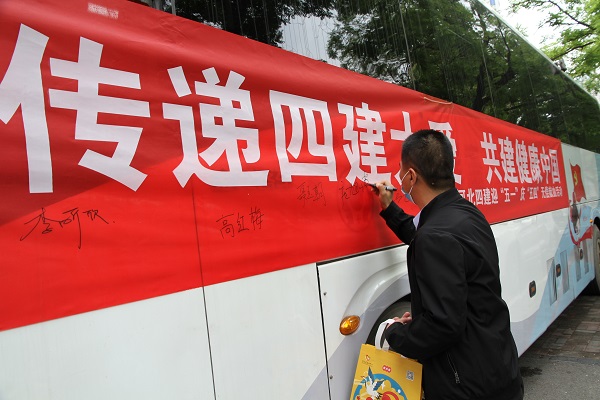4月28日下午2點(diǎn),在公司門口,一輛懸掛有“傳遞四建大愛(ài)、共建健康中國(guó)”紅色條幅的白色獻(xiàn)血車,和門口正上方的“河北四建”四個(gè)紅色大字相互映襯,顯得格外醒目;一條由四建職工組成的隊(duì)伍“長(zhǎng)龍”,正在徐徐向前移動(dòng)著。此時(shí),由公司黨委宣傳部和團(tuán)委聯(lián)合組織的以“傳遞四建大愛(ài)、共建健康中國(guó)”為主題的迎“五一”慶“五四”無(wú)償獻(xiàn)血活動(dòng),正在有條不紊進(jìn)行中。公司機(jī)關(guān)以及附近片區(qū)的各單位職工共計(jì)48人參與。